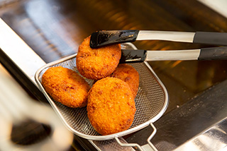 - 冷凍のまま、170-180度のたっぷりの油で6分揚げてお召し上がりください。