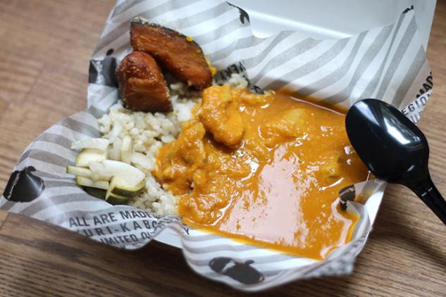 - 鶏肉、かぼちゃ、トマト、玉ねぎ、ヨーグルト、バター、生姜、にんにく、食塩、クミンシード、スパイスミックス