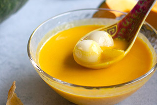 栗マロンかぼちゃのペーストをたっぷりと使用しココナッツミルク、エバミルクとを合わせた香港風のお汁粉です。