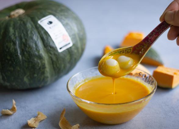 香港では胃に優しく、身体を温める作用のある南瓜は薬膳としても重宝されているとのことで2019年に三宮店出店と同時に期間限定商品としてティムマッマ元町店でお出し頂いたメニューです。とても人気だったこともあり今回いつでもお召し上がり頂けるように冷凍による販売を始めました。
