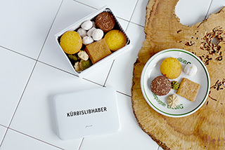 「KURBISLIBHABER」はかぼちゃ愛っていうドイツ語です。ヨーロッパの中でも東欧の琺瑯の看板やそれに書かれたフォントが好きで質感が近いカンカンを見つけたので好きなフォントをシルクスクリーンで表現して作ってもらったスペシャルな缶です。
