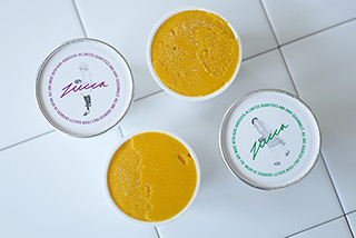 まるでカボチャプリンのようなジェラートと言うことで名付けました。北海道産 栗マロンかぼちゃの旨味とコクを活かすためにデンマークの岩塩やミネラル分の多いきび糖を使いました。自家製のカラメルソースを足して、ズッカのお店のみで販売している「かぼちゃプリン」のイメージで作ったデザートです。